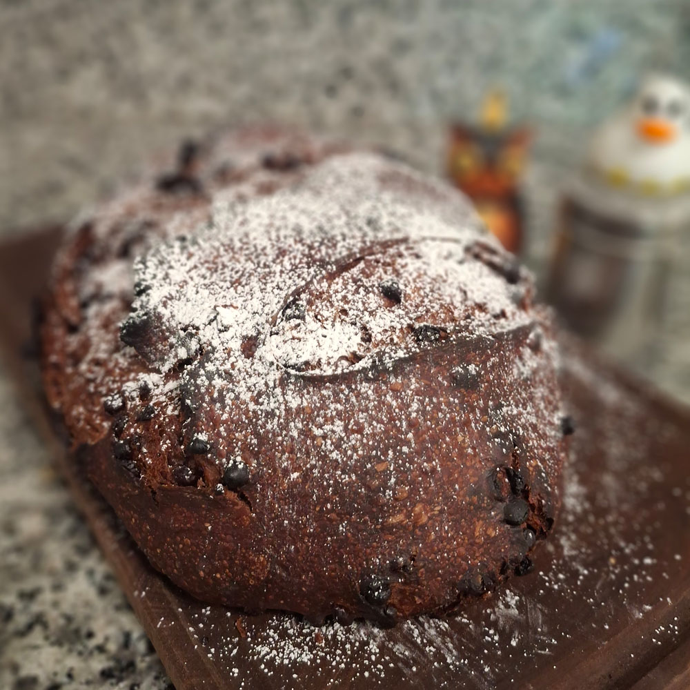 The Sourdough chocolate loaf combines the bitter savoriness of cocoa powder, the salty crunch and bounciness of sourdough, and the sweetness of chocolate chips and maple syrup. It’s an incredible treat for cocoa and chocolate lovers.